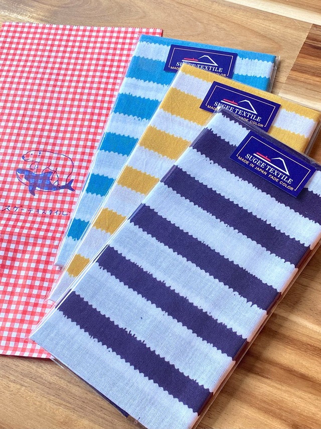 ST17826 「江ノ縞」紫紺&イエロー&ターコイズ 新年限定4日までの3枚組です。 数量限定で販売いたします。 在庫売り切れ次第終了といたします。 色味は紫紺とイエローとターコイズです. 少しずつ明るくなるような色落ちをお楽しみいただけます. 注染という手ぬぐいで用いる染め方をしており,使って洗ってを繰り返すごとに色が褪せ,風合いが柔らかくなります. 様々な用途で,ガンガン使ってデニムのように楽しんでいただけます! カラー:紫紺&イエロー&ターコイズ サイズ:約34㎝×約100㎝(両端切りっぱなしのため前後します) 原産国:日本 組成:綿100% ※最初の数回は洗濯の際に色落ち,色移りする可能性がありますので,白いもの,淡色とは分けて洗うか,手洗いをおすすめします. 洗濯の条件や乾燥方法,使用頻度等で色落ちの雰囲気は十人十色です.文中の色落ち感の説明は参考程度にご理解ください. ※注染の特性として,にじみや歪みが部分的にあるなど,個体差があります. 柄が裏面までしっかりと抜けているのが特徴で,顔料染めやシルクスクリーンにはない味わいを出したいため注染で製作しており,個体差も商品の魅力として提案しております.