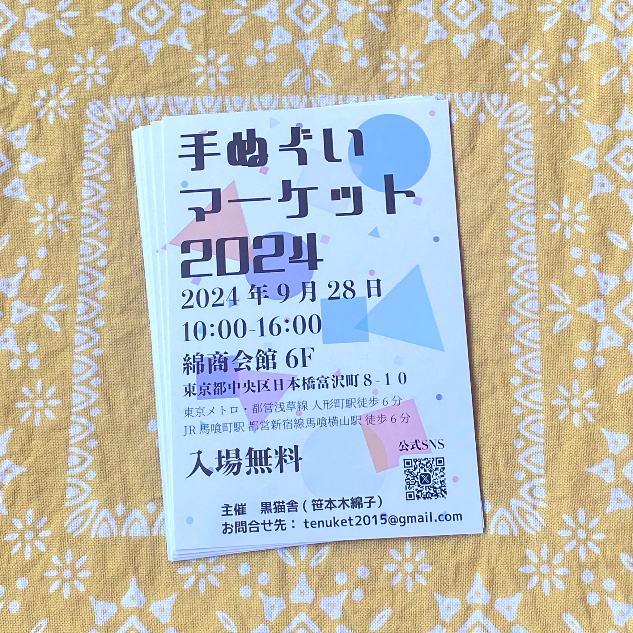 9月28日に東京都内の日本橋で開催される手ぬぐいマーケットに出展いたします。