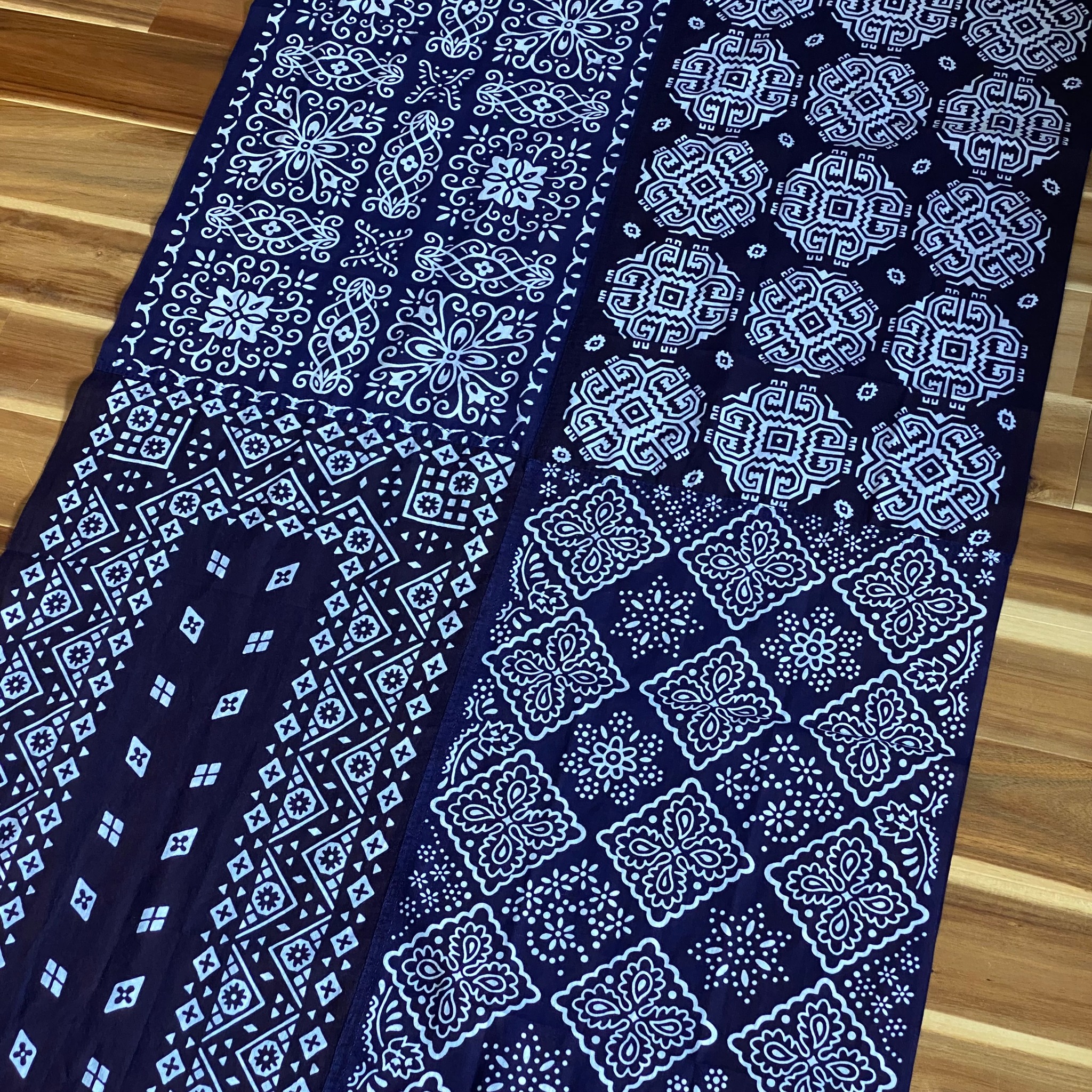 4枚の手ぬぐいを二列ずつ縫い合わせて、200センチ×68センチの大判ストールを製作しました。