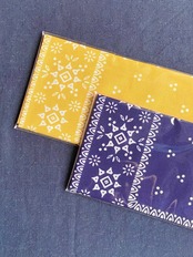 顔料染めやシルクスクリーンにはない味わいを出したいため注染で製作しており,個体差も商品の魅力として提案しております。