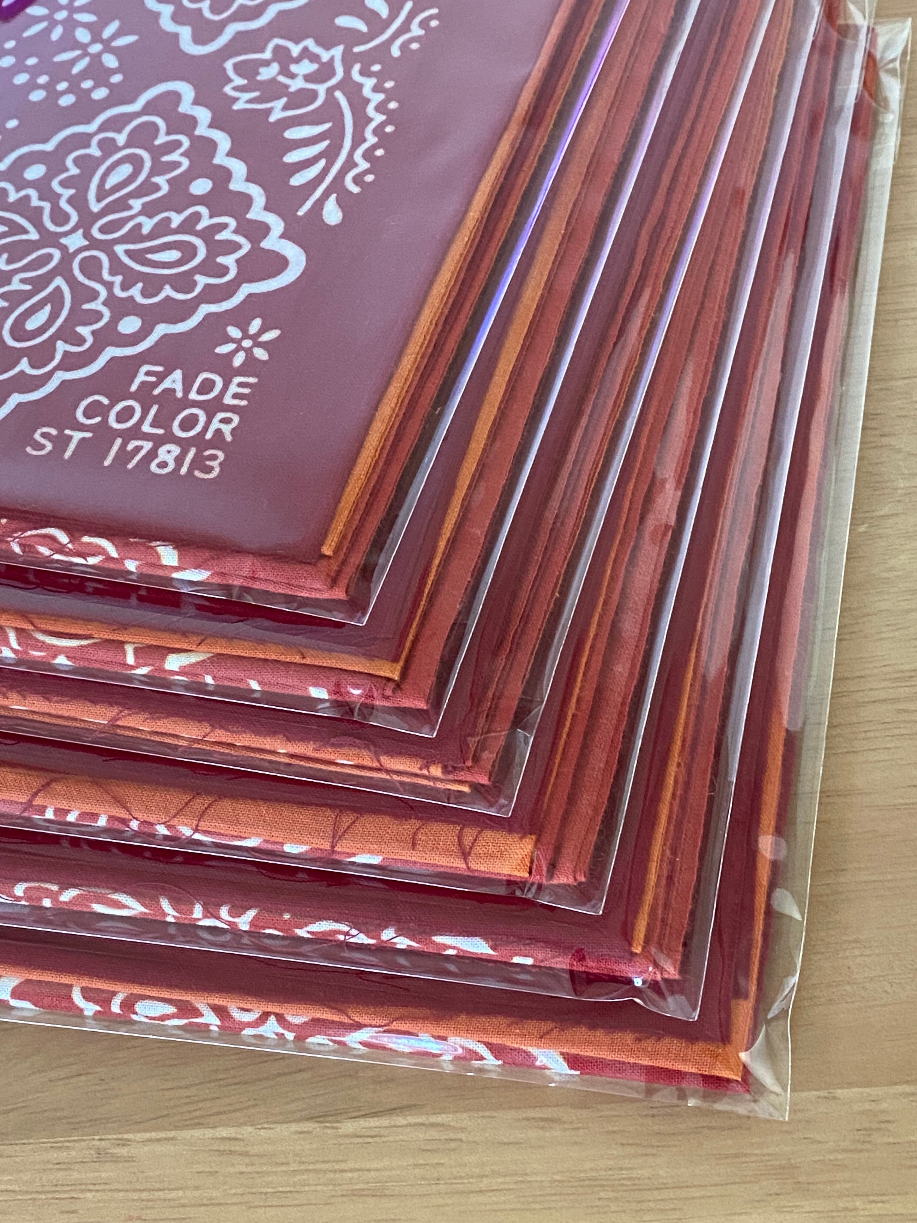 オールドバンダナに見られる絶妙な手仕事感、イレギュラー感を表現した仕上がりです。