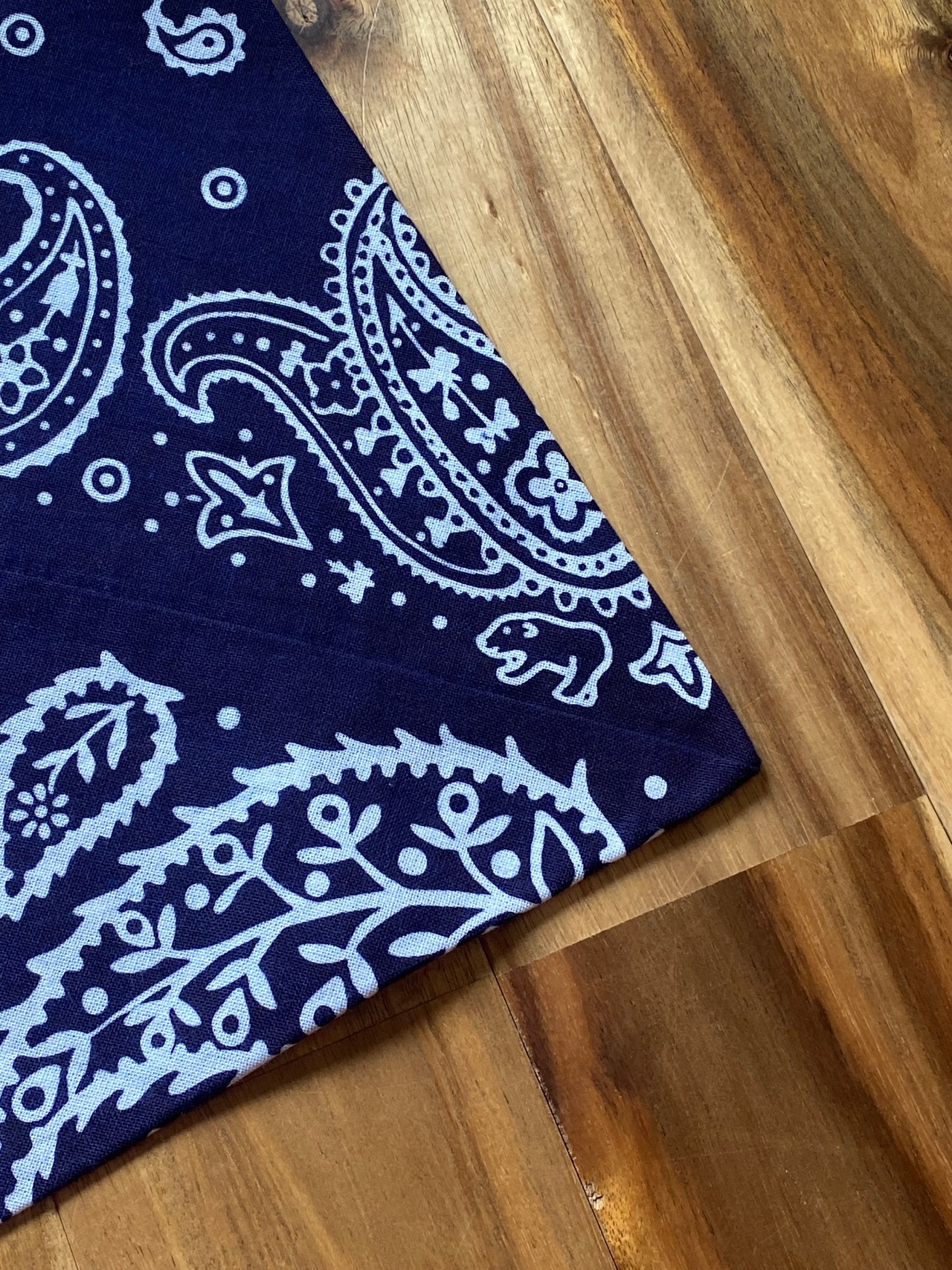 前回の米国紋に引き続き以前からご希望の声が多かったペイズリー柄で図案を作り、縫製される前の未裁断の雰囲気を一枚の手ぬぐいに落とし込みました。