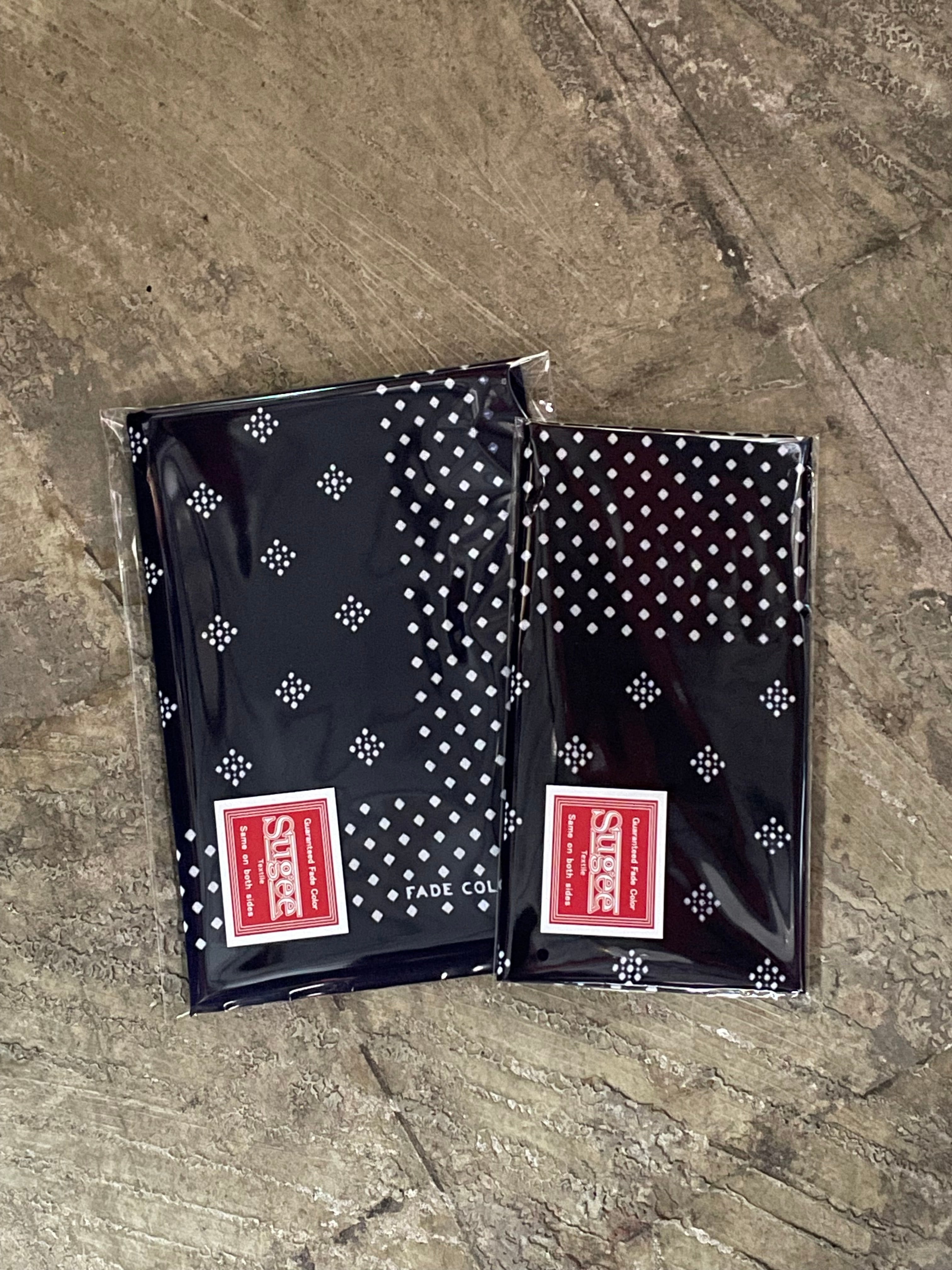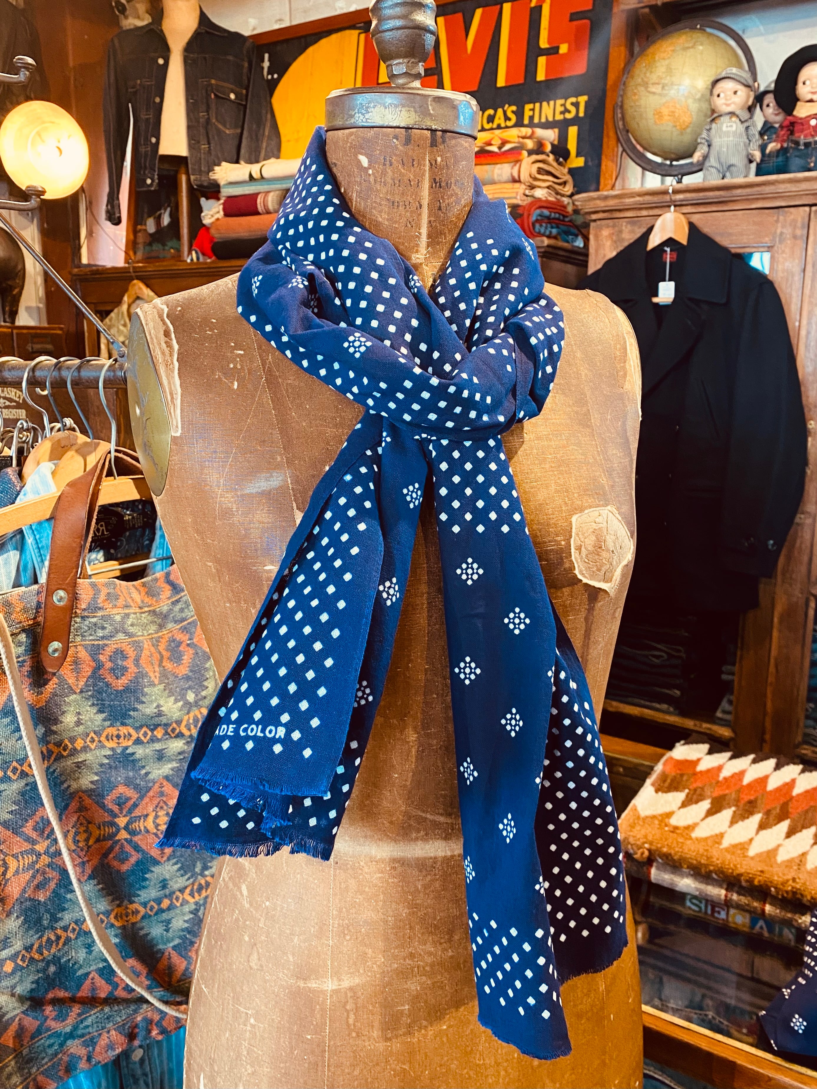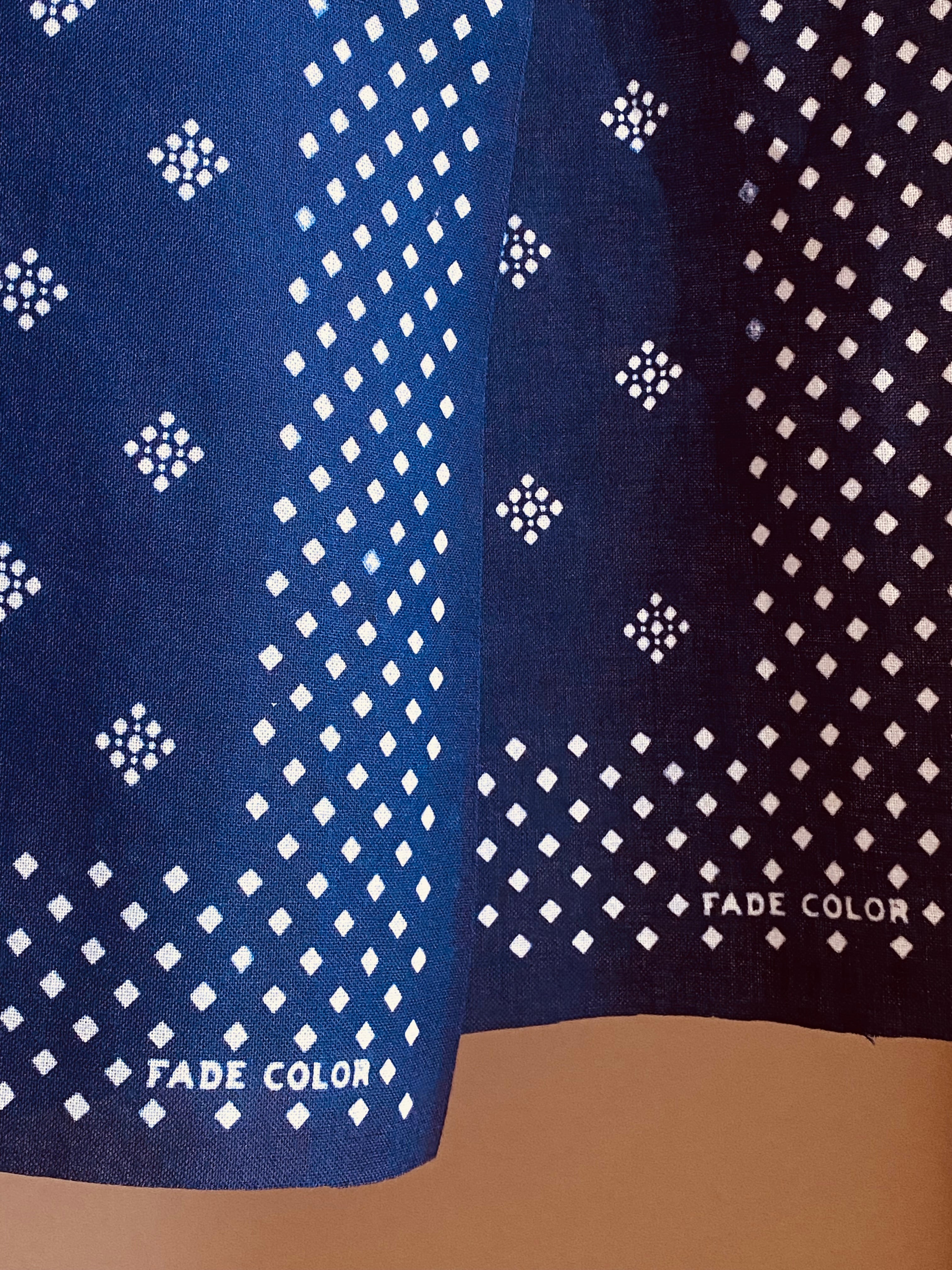 ちなみに「FADE COLOR」はオールドバンダナに見られる堅牢という意味でのFAST COLORになぞらえて、あえて色落ちをポジティブに表現する意味で表記した造語で、注染の味わい深いフェード感をお楽しみいただくために大事にしている言葉です。