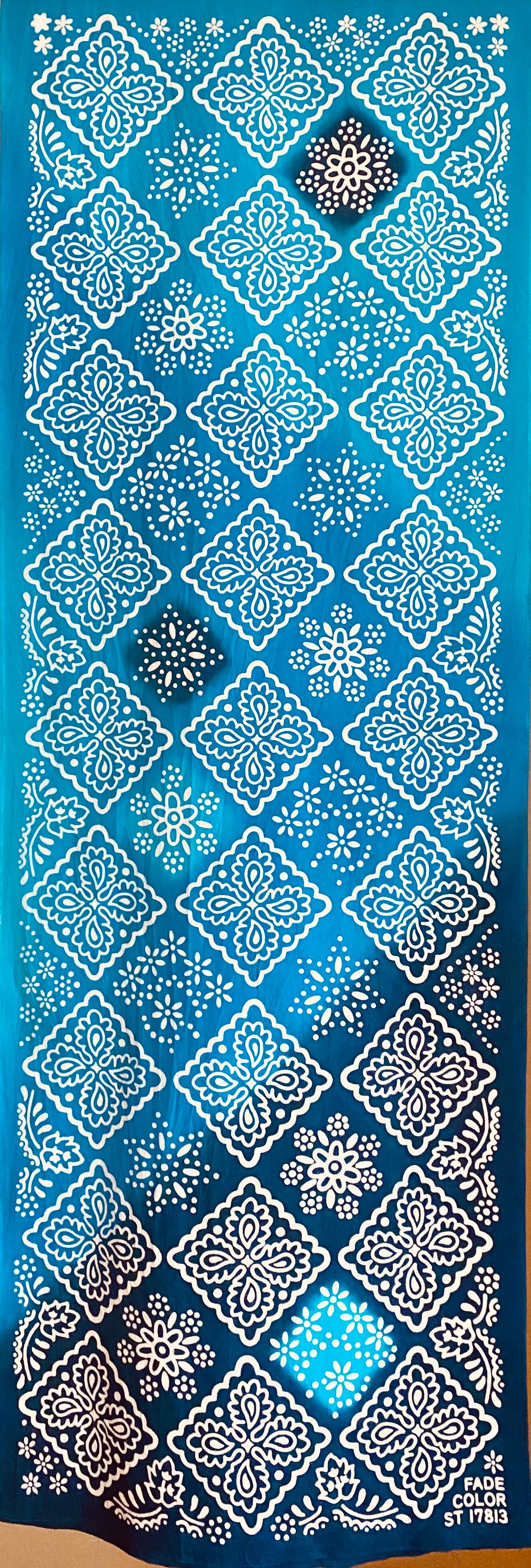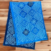 オールドバンダナの中で「クッキー柄」と呼ばれ、特徴的な四角形のモチーフが可愛らしい一枚を基に手ぬぐいへと再構成しました。