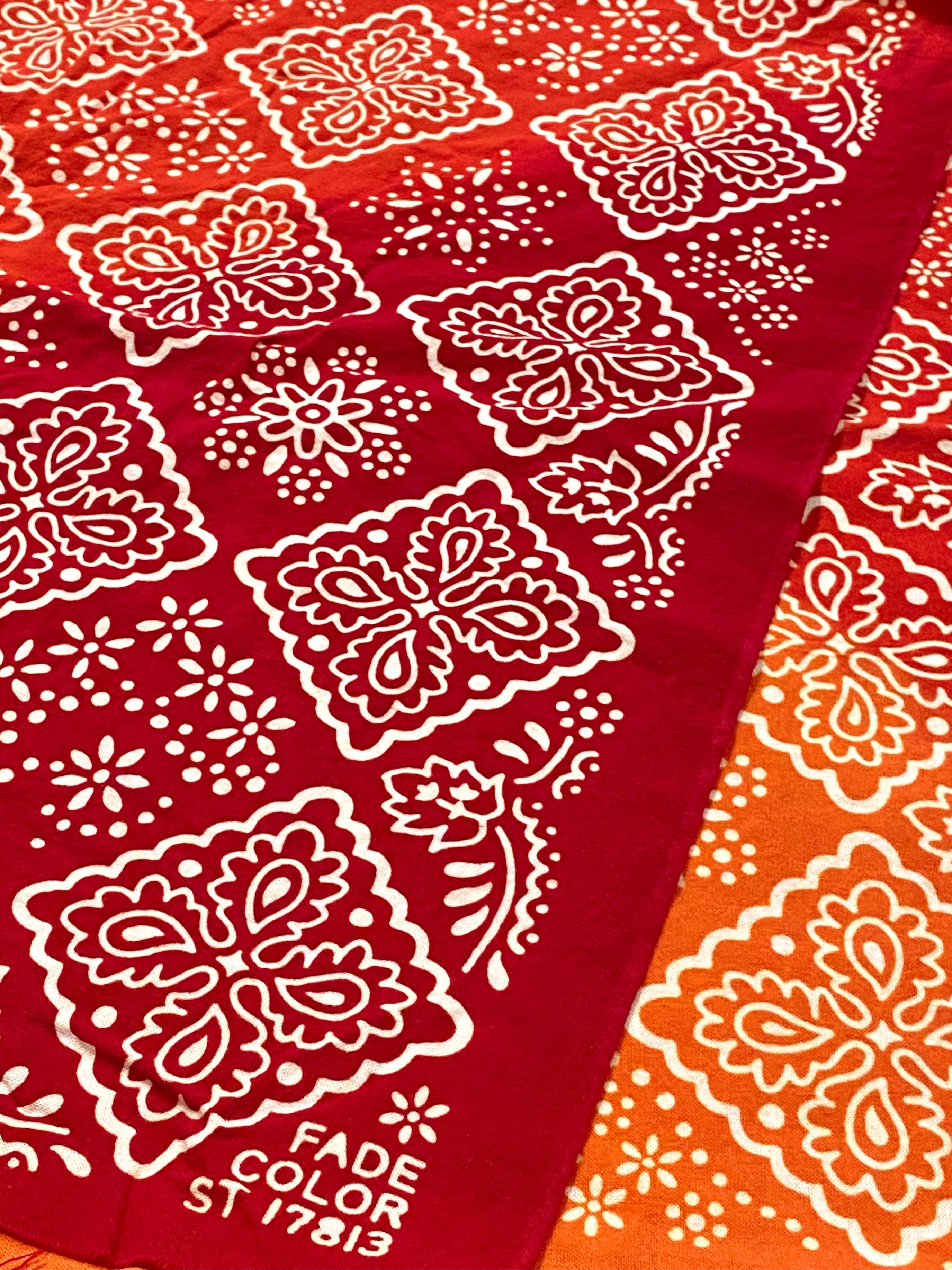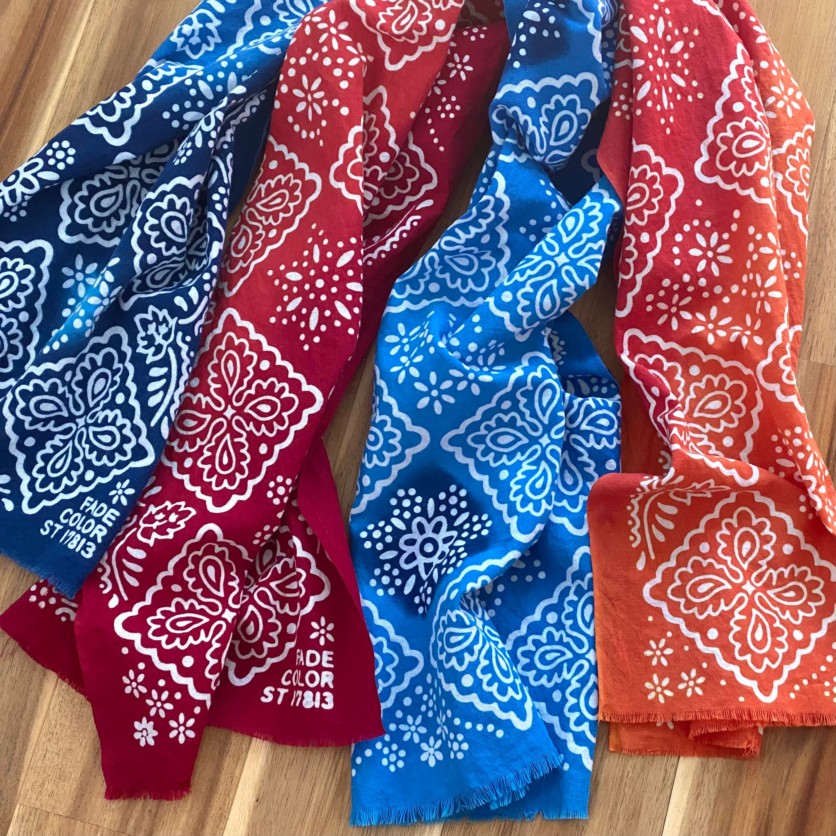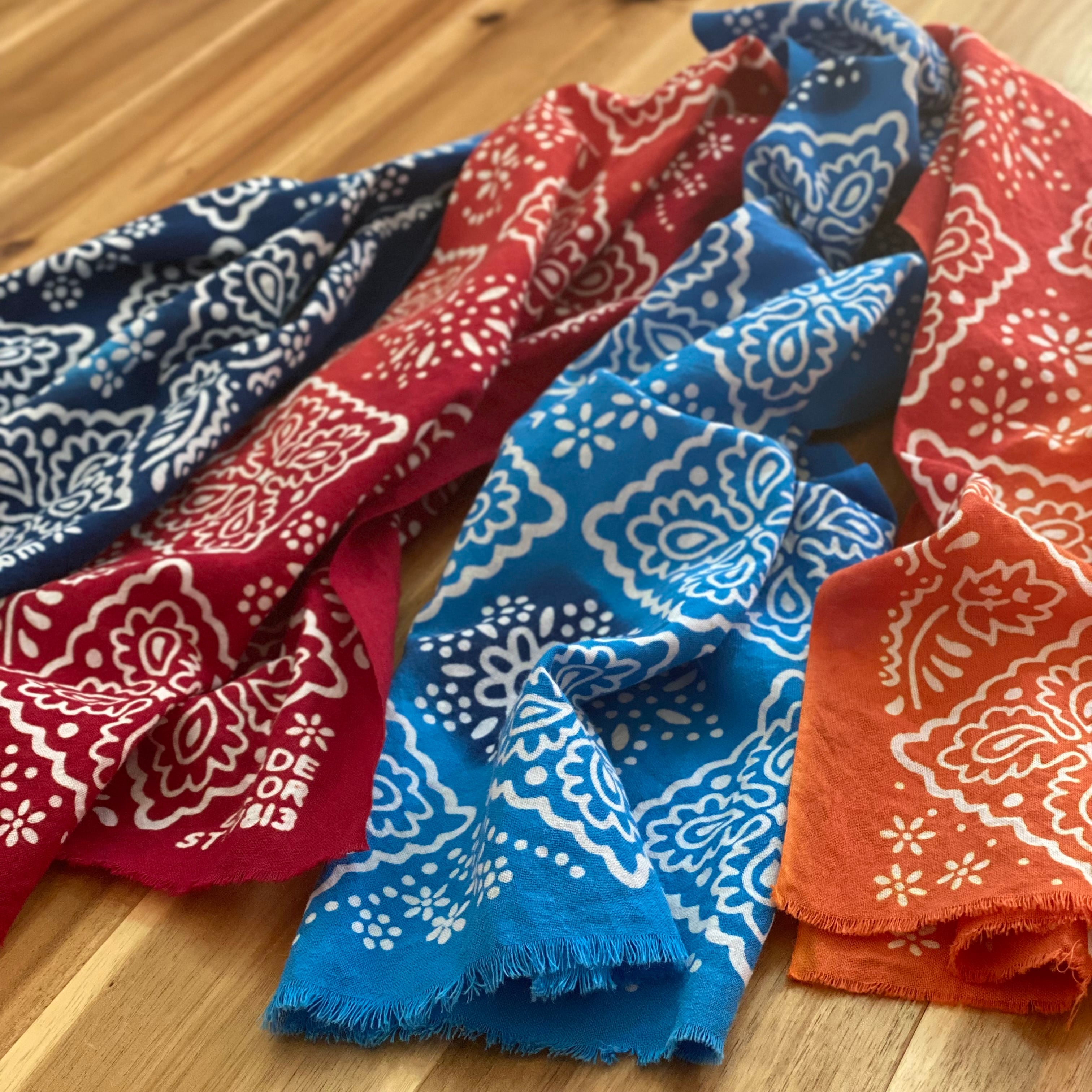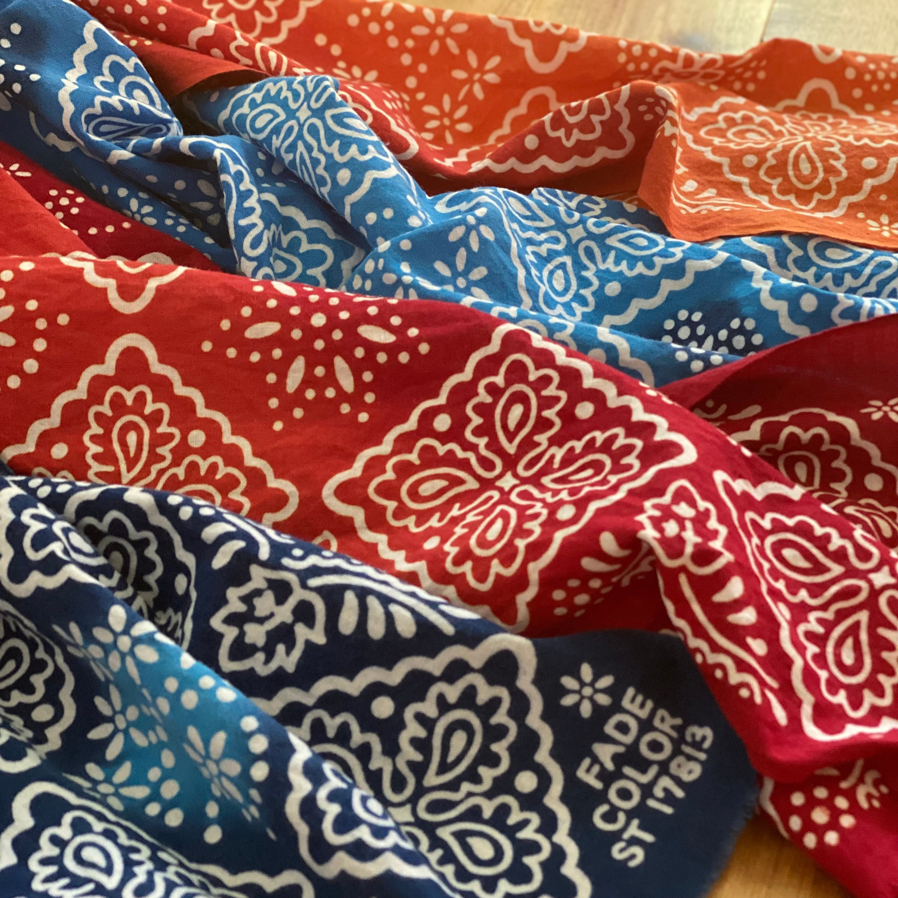 オールドバンダナに見られる絶妙な手仕事感、イレギュラー感を表現した仕上がりです。