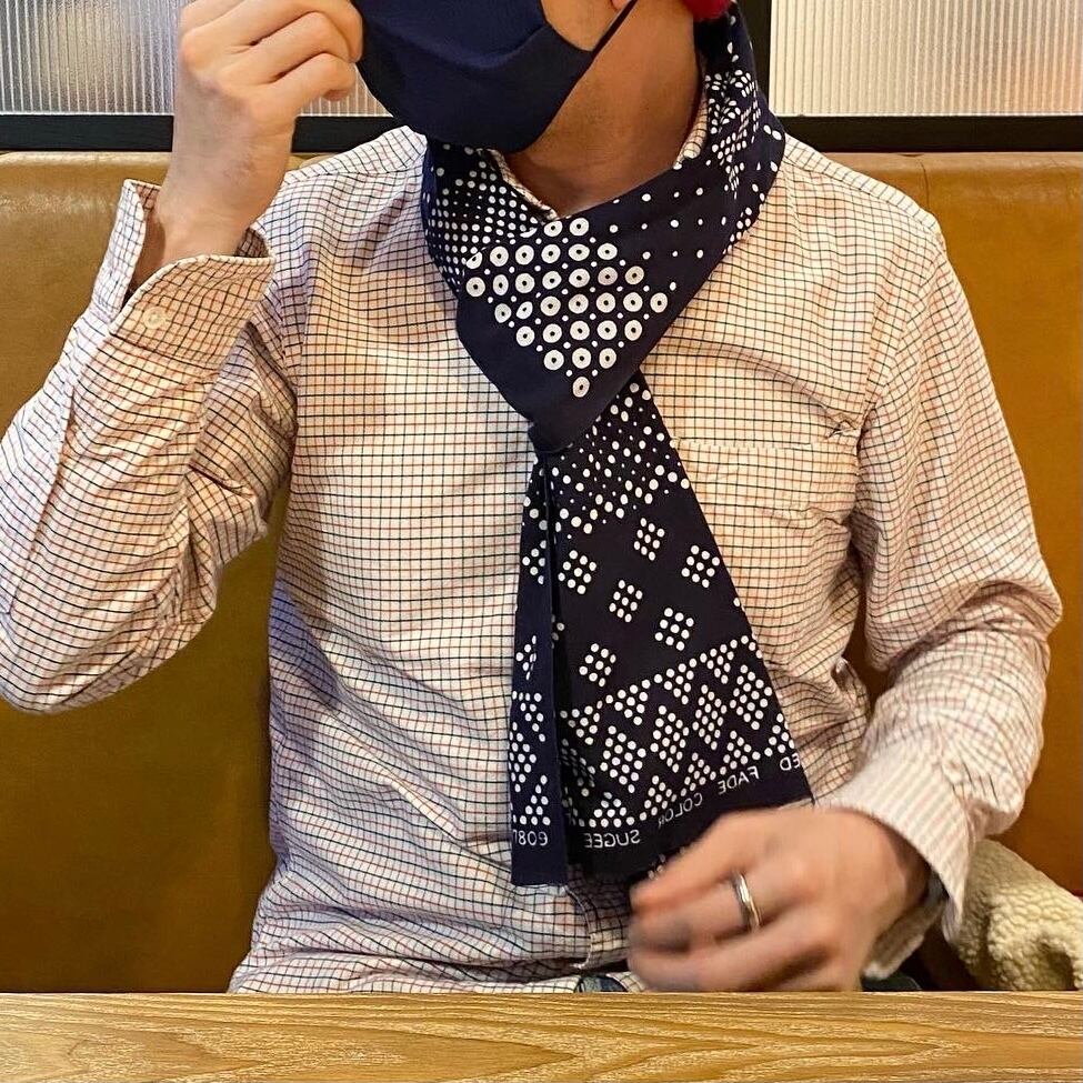 ヴィンテージバンダナの中でもドット柄に特化したメーカーのものから着想し,それを贅沢に集約させてしまった一枚です.