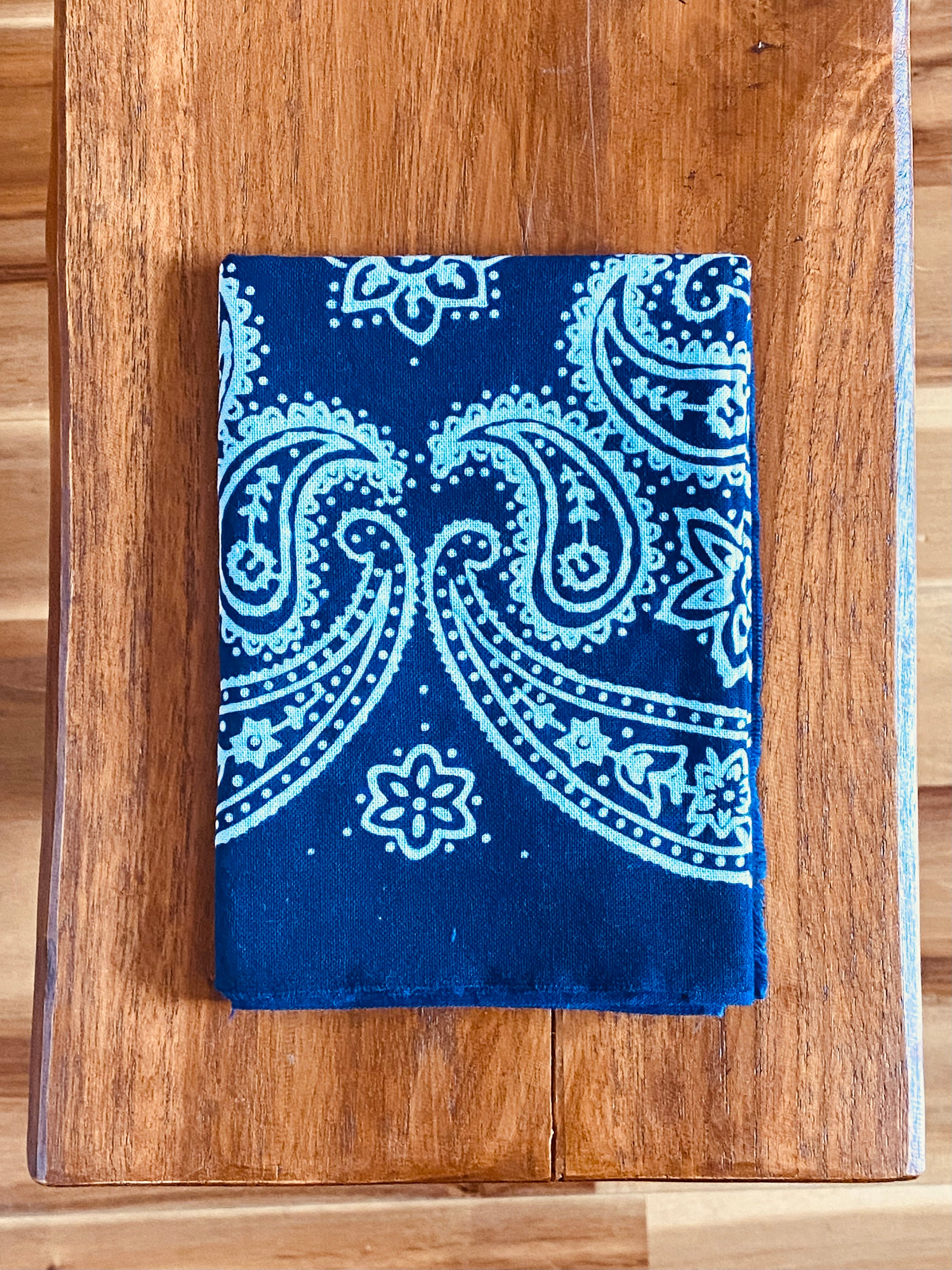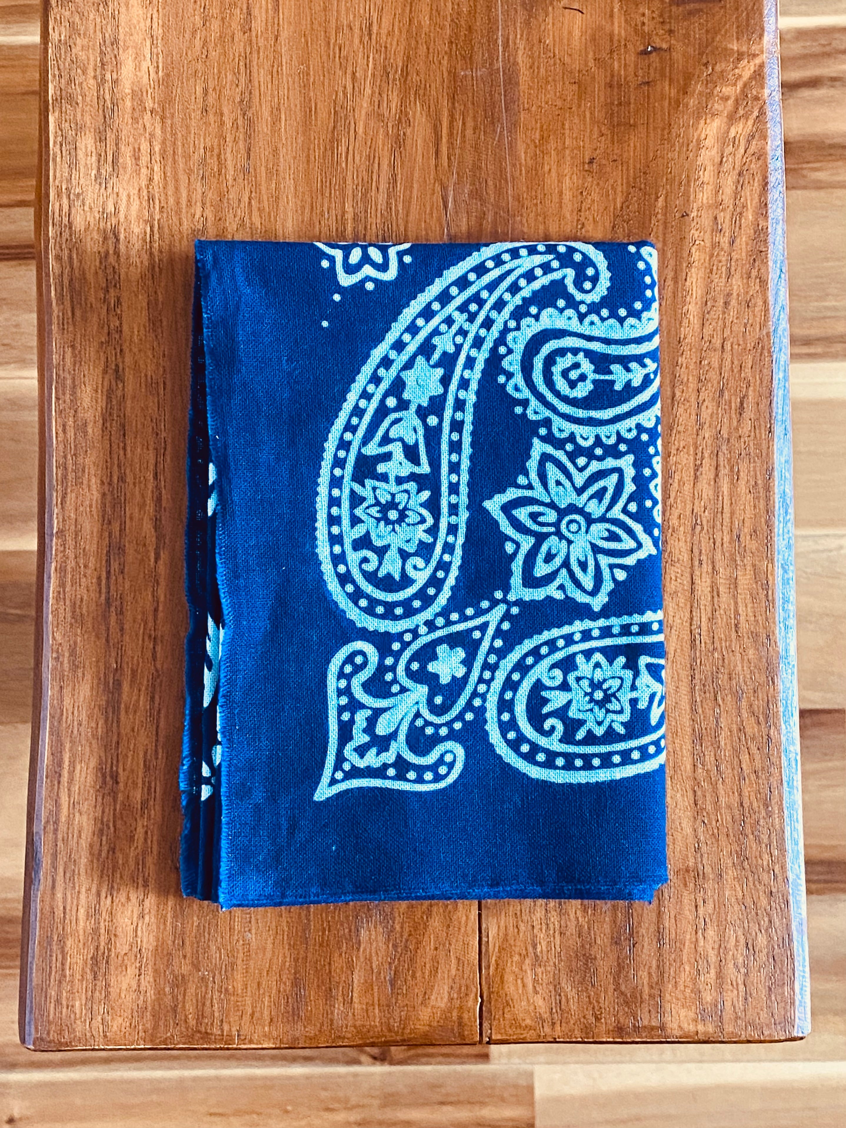 3つの異なるバンダナパターンが並んでいて、間にあるドットが未裁断の雰囲気を表現しています。