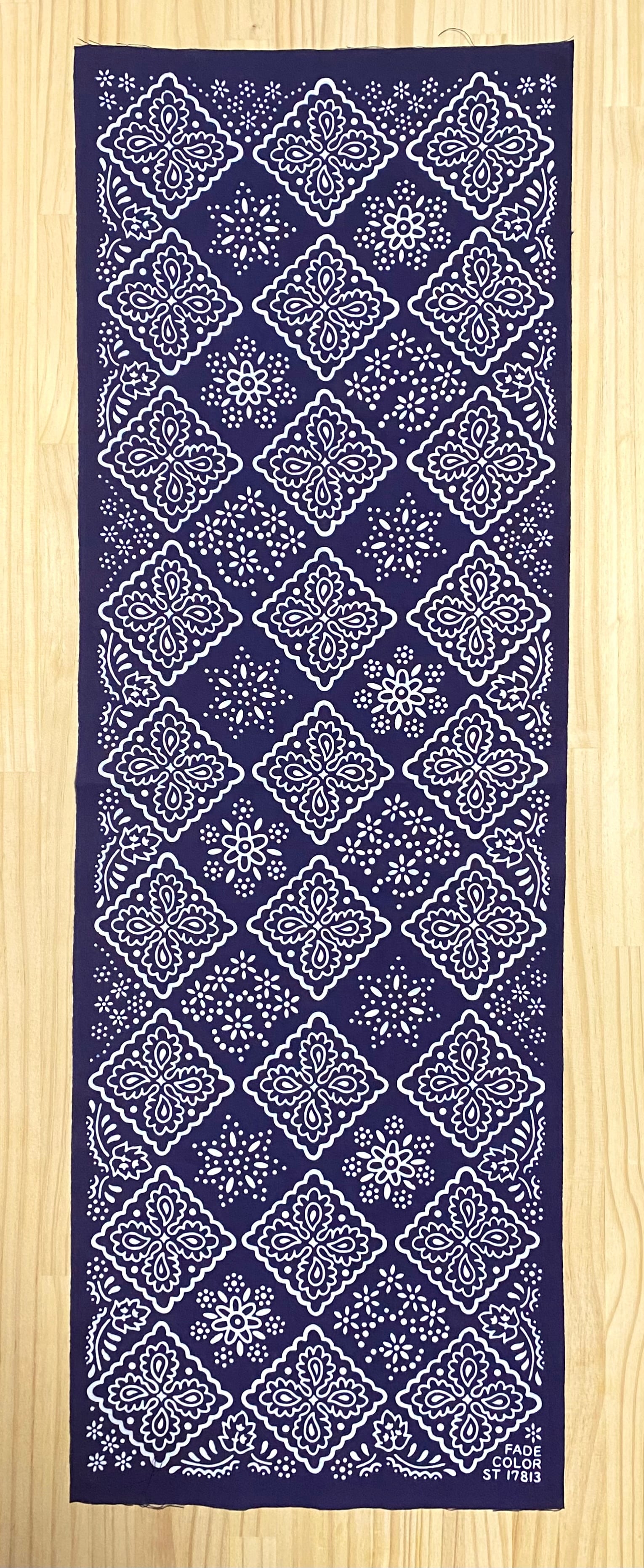オールドバンダナの中で「クッキー柄」と呼ばれ,特徴的な四角形のモチーフが可愛らしい一枚を基に手ぬぐいへと再構成しました.