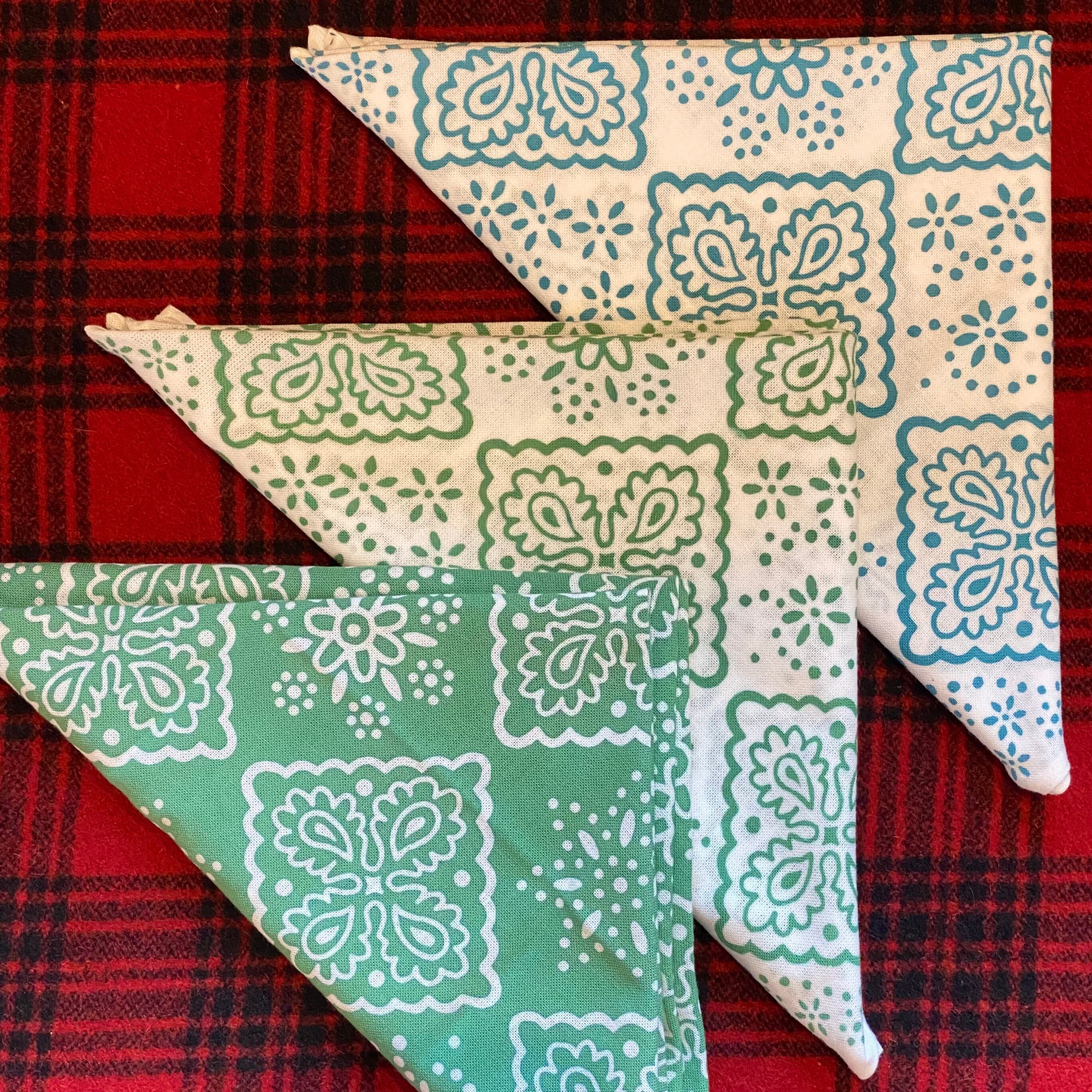 オールドバンダナの中で「クッキー柄」と呼ばれ,特徴的な四角形のモチーフが可愛らしい一枚を基に手ぬぐいへと再構成しました.