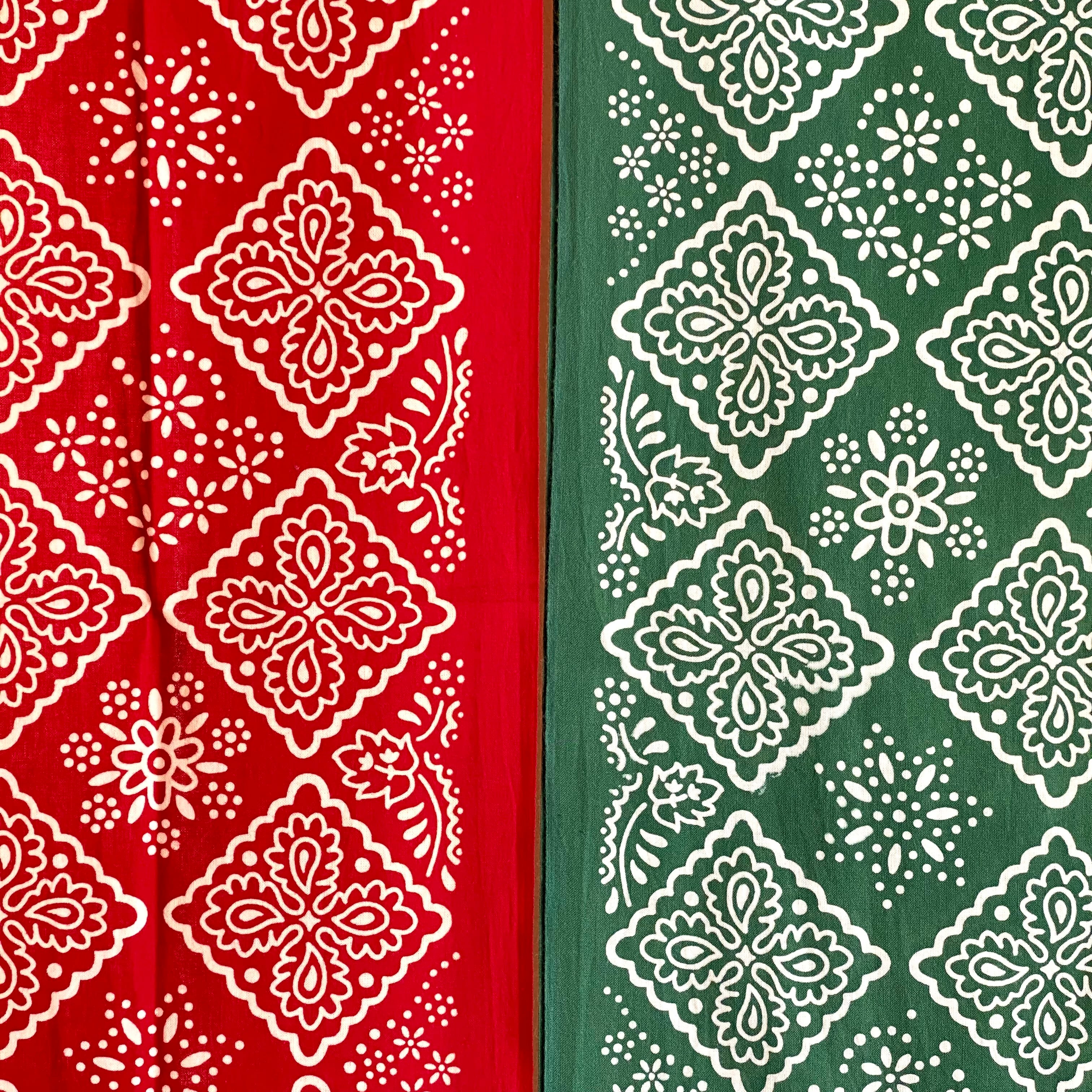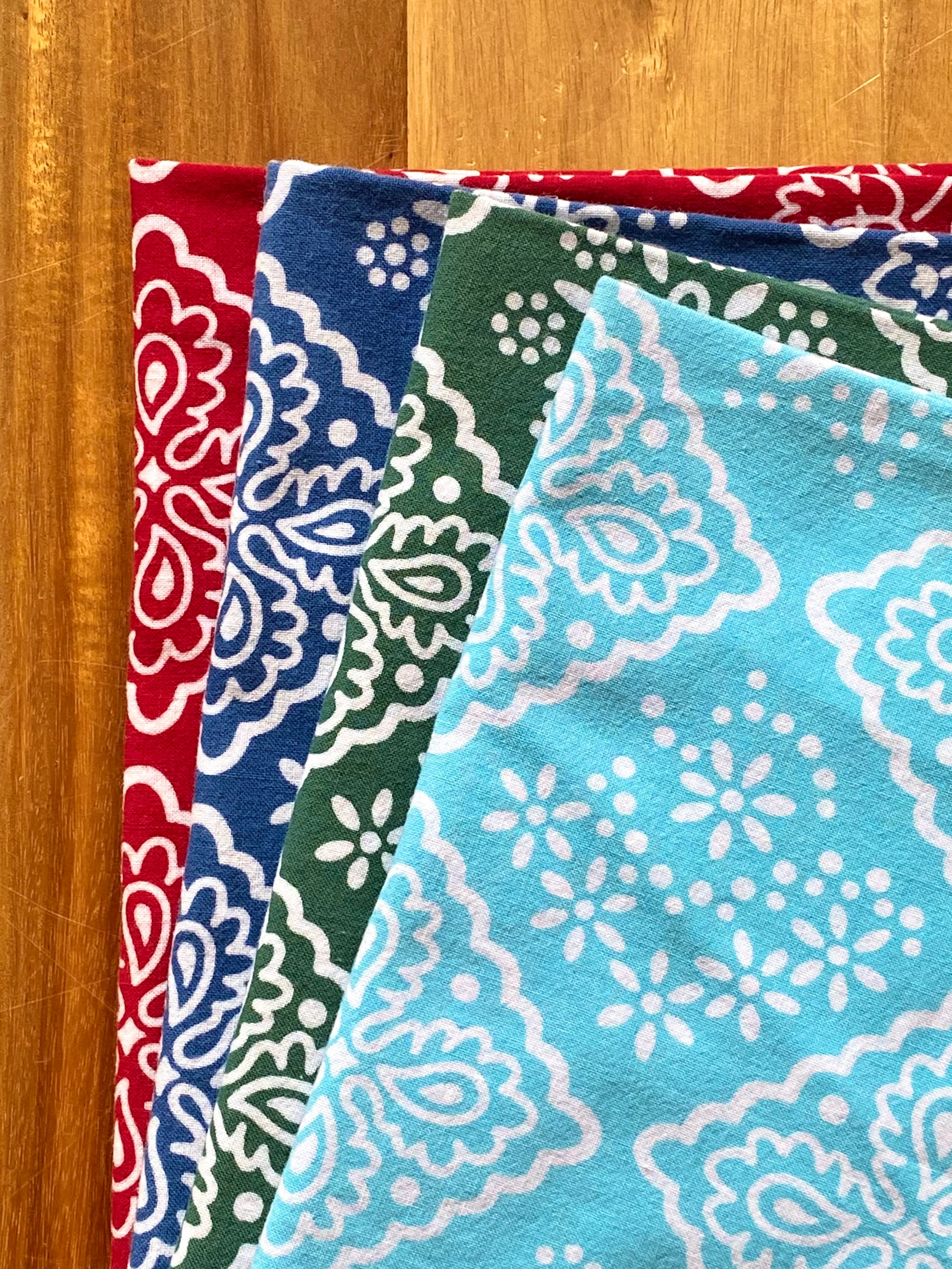 オールドバンダナの中で「クッキー柄」と呼ばれ,特徴的な四角形のモチーフが可愛らしい一枚を基に手ぬぐいへと再構成しました.